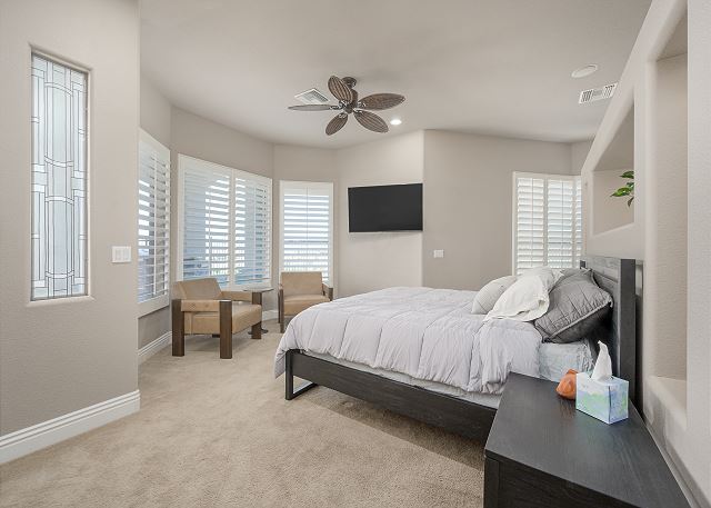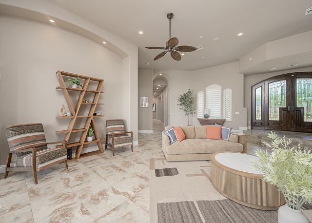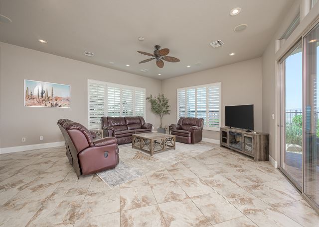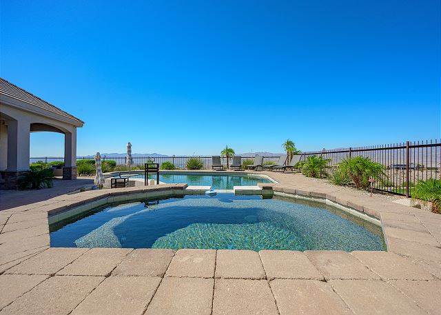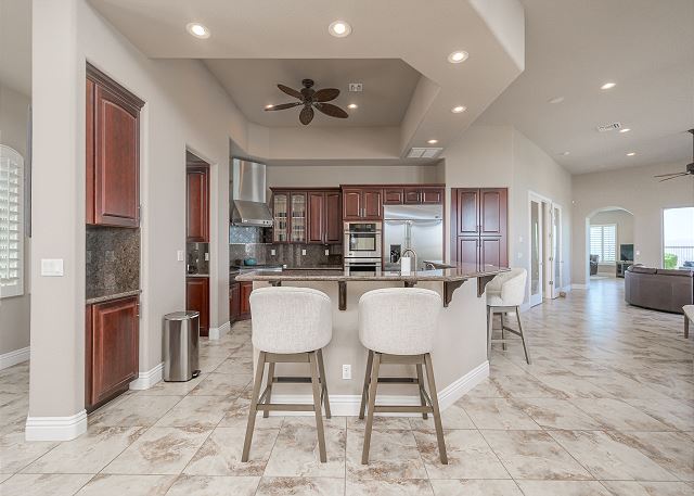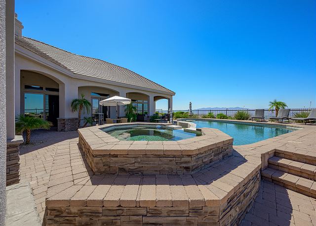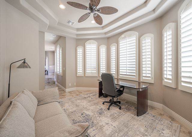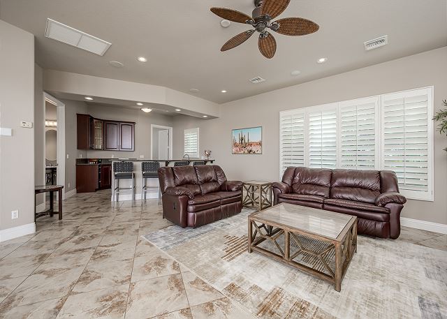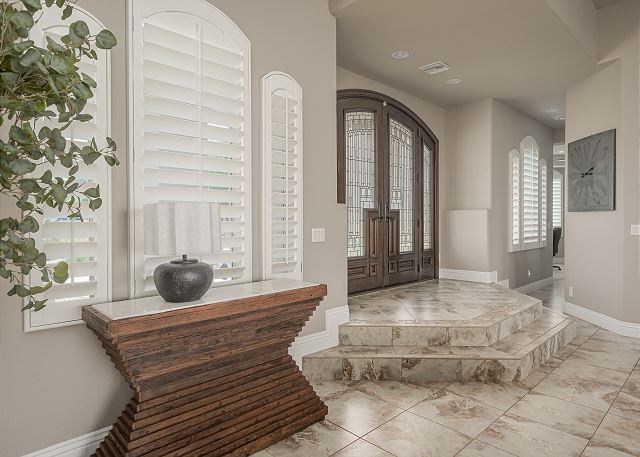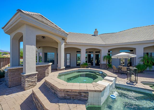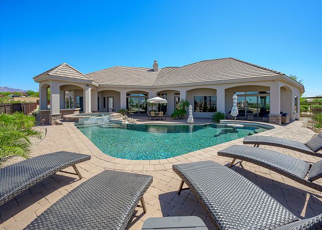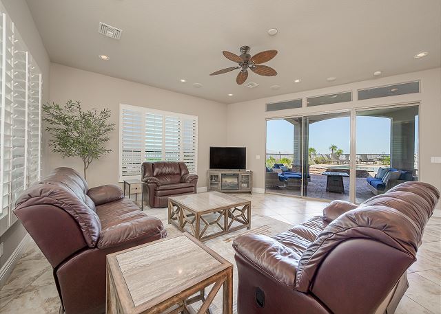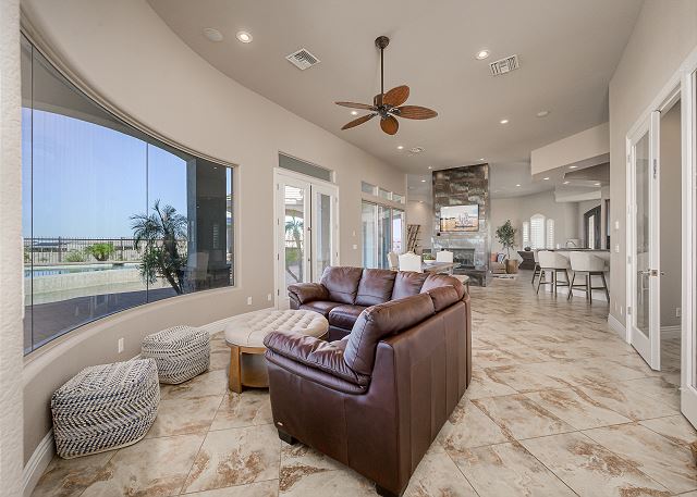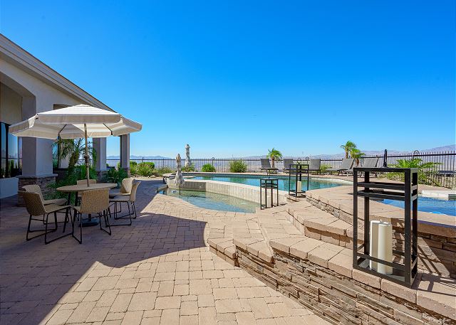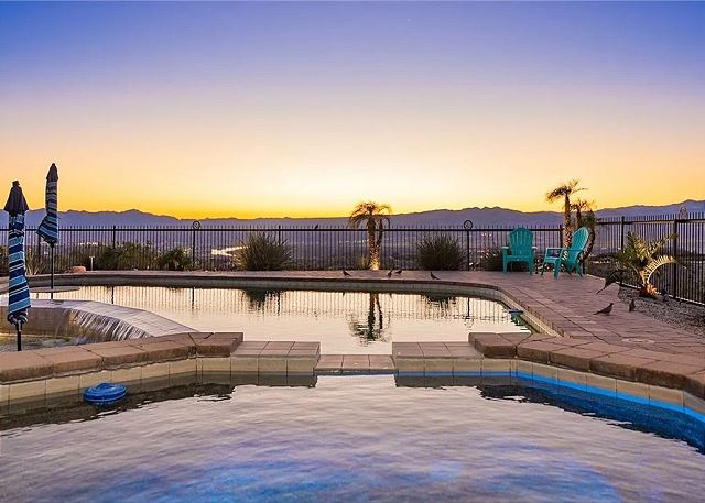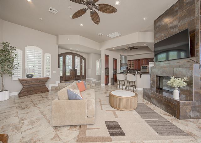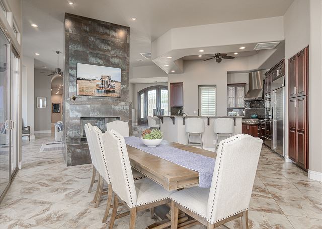 Air Conditioning, Clothes Dryer, Fireplace, Garage, Heating, Internet, Linens Provided, Living Room, Parking, Towels Provided, Washing Machine, Desk, Wifi, Office, Coffee Maker, Dishes & Utensils, Dishwasher, Ice Maker, Kitchen, Microwave, Oven, Refrigerator, Stove, Dining Table, Kitchen Island, Golf Course Front, Golf Course View, Lake View, Mountain View, Golf, Fenced Yard, Hot Tub, Private Pool, bedroom, full, Dining Area, Dining Room, Outdoor lighting, Deadbolt lock on entryway, Smoke detectors, Carbon monoxide detector, Clean with disinfectant, High touch surfaces cleaned with disinfectant, Towels and bedding washed in water that's at least 60sC/140sF